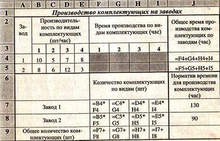 Определите еженедельные затраты времени (в часах) на производство комплектующих каждого вида на каждом заводе, обеспечивающие максимальный объем реализации изделий при минимальном дисбалансе. 48 Часть 1. Поиск решений на электронных таблицах Примеры структуризации задач 49