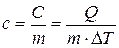 Теплоемкость характеризует то количество теплоты, которое нужно сообщить телу, чтобы нагреть его на 1 К (при охлаждении на 1 К тело выделяет то же количество теплоты, что и поглощает при нагревании). Нагревая тела с одинаковыми массами, но состоящие из различных веществ, можно обнаружить, что для повышения их температуры на 1 К требуются различные количества теплоты; следовательно, теплоемкость тела зависит от его природы. Теплоемкость тела также пропорциональна его массе. Поэтому характеристикой тепловых свойств вещества является его удельная теплоемкостьс - величина, равная отношению теплоемкости тела к его массе: