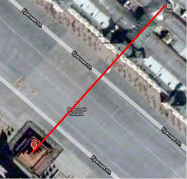 Можно так же предположить, что эти вибраторы облучают треугольное здание, которое вершиной направленно строго на восток. Разглядывая карту в режиме спутника, можно заметить, что с правой стороны от мавзолея находится ГУМ с большим количеством народа.