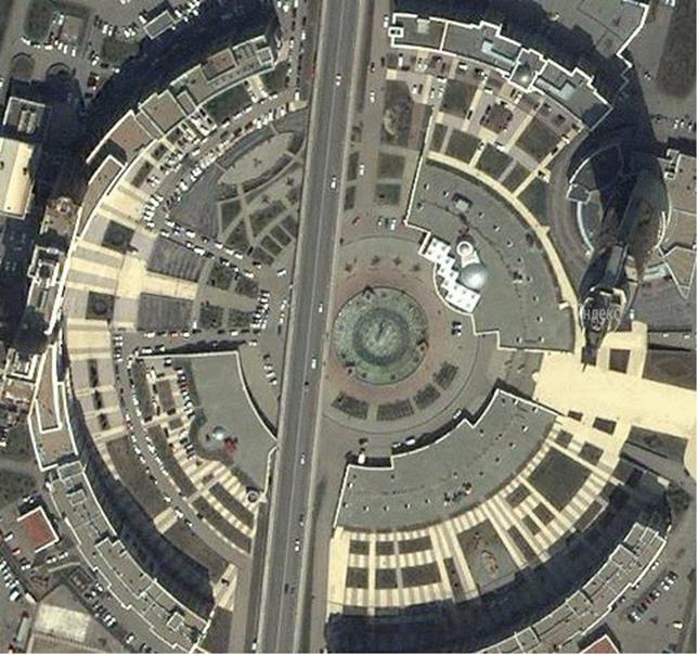 Еще это зеленое поле похоже на рупорную антенну. Завершает весь тракт торгово-развлекательный комплекс Хан Шатыры или шатер хана.