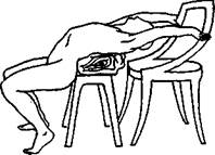 Упражнение 3 Вы ложитесь на валик (например, из одеяла), который лежит на табурете высотой 0,5 м. Дыхание ртом. В этом положении хорошо растягиваются мышцы спины, которые при этом расслабляются, «отпуская» грудь. Дыхание самопроизвольно углубляется. Может появиться боль в спине. Если она небольшая (а главное, нет патологии позвоночника), то следует продолжать, и боль уйдет.