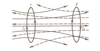 Одним из способов изменения магнитного потока Φ через площадь поверхности, ограниченной каким-либо из контуров, согласно (1) и (1`), является изменение силы тока в другом, магнитосцепленном с ним контуре. И тогда, если в контуре 1 произойдет изменение силы тока, то в контуре 2 будет наводиться электродвижущая сила, которая, согласно закону Фарадея (2), будет зависеть от скорости изменения тока I1: