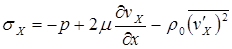 Уравнения (7.11)-(7.13) называются уравнениями Рейнольдса для турбулентного движения несжимаемой жидкости, а величины