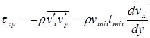 Данный тип моделей для двумерного потока предполагает, что скорость смешения vmix, есть величина того же порядка как пульсационная составляющая скорости, и она может быть определена на основе экспериментальных данных для широкого класса турбулентных течений. Т.е.