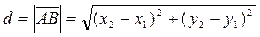 Требуется найти расстояние d между точками А(х1; у1) и В(х2;у2) плоскости Оху. Решение: Искомое расстояние d равно длине вектора