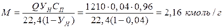 Определяем количество поглощаемого ацетона М, кмоль/ч: