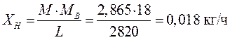 Начальная концентрация ацетона в воде, подаваемой на верх абсорбера, Х в = 0. Конечная концентрация ацетона в воде, вытекающей внизу из абсорбера Х н, кмоль ацетона/кмоль воды: