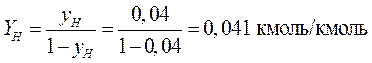 Начальная концентрация ацетона в воздухе внизу при входе в абсорбер Yн, кмоль ацетона/кмоль воздуха: