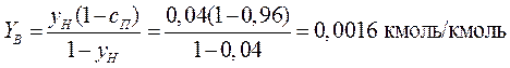 Конечная концентрация ацетона в воздухе, выходящем из абсорбера Yв, кмоль ацетона/кмоль воздуха: