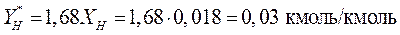 Значение Y н * находим по уравнению равновесной линии для Х н, соответствующего низу абсорбера: