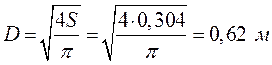 Найдем диаметр корпуса абсорбера D, м: