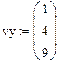 Рис.16.Трехмерный график данных, записанных в векторной форме. Системы компьютерной алгебры снабжаются специальным процессором для выполнения аналитических (символьных) вычислений. Его основой является ядро, хранящее всю совокупность формул и формульных преобразований, с помощью которых производятся аналитические вычисления. Чем больше этих формул в ядре, тем надежней работа символьного процессора и тем вероятнее, что поставленная задача будет решена, разумеется, если такое решение существует в принципе (что бывает далеко не всегда). Ядро символьного процессора системы Маткад- несколько упрощенный вариант ядра известной системы символьной математики Maple V фирмы Waterloo Maple Software, у которой MathSoft (разработчик Маткада) приобрела лицензию на его применение, благодаря чему Маткад стал системой символьной математики. Введение в систему Маткад символьных вычислений придает ей качественно новые возможности. Символьные вычисления выполняются, в конечном счете, столь же просто для пользователя, как, скажем, вычисление квадрата х. Операции, относящиеся к работе символьного процессора, содержатся в подменю позиции Symbolic (Символика) главного меню. Чтобы символьные операции выполнялись, процессору необходимо указать, над каким выражением эти операции должны производиться, т е надо выделить выражение. Для ряда операций следует не только указать выражение, к которому они относятся, но и наметить переменную, относительно которой выполняется та или иная символьная операция. Само выражение в таком случае не выделяется, ведь и так ясно, что если маркер ввода выделяет переменную какого-либо выражения, то это выражение уже отмечено наличием в нем выделяемой переменной Символьные операции разбиты на пять характерных разделов. Это операции с выражениями, операции с переменными, операции с матрицами, операции преобразования, стиль эволюции. Первыми идут наиболее часто используемые операции Они могут выполняться с выражениями, содержащими комплексные числа или имеющими решения в комплексном виде В данной лабораторной работе мы рассмотрим только операции с матрицами. В дальнейшем будут рассмотрены и другие символьные операции. Символьный процессор системы Маткад обеспечивает проведение в символьном виде трех наиболее распространенных матричных операций транспонирования и обращения матриц, а также вычисления их детерминанта.