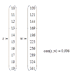 Рис.4.Вычисление корреляционного момента и коэффициента корреляции. Примечание: случайная величина w является неслучайной функцией (квадратом) величины Z. Поэтому теоретически коэффициент корреляции должен был быть равен 1. Задача 5. Известен курс двух валют: доллара США и монгольского тугрика. Спрашивается: зависит ли тугрик от доллара? И курс доллара, и курс тугрика являются случайными величинами. Из предмета «Теория вероятностей» известно, что мерой статистической связи двух случайных величин является их коэффициент взаимной корреляции, определяемый по формуле: