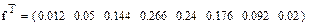 Требуется построить гистограмму этого ряда. Гистограмма реализуется в Маткаде с помощью нескольких функций. Так как нам уже заданы частоты попадания случайной величины в каждый интервал, то мы построим ее следующим образом: 1. Сформируем векторы интервалов наблюдений v и частот f (приведены для экономии места в транспонированной форме) 2.