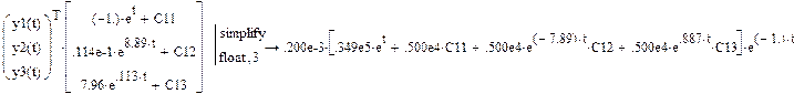 Используя оператор simplify(упростить. Соответствующая кнопка символьной панели), упрощаем найденное решение