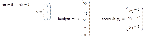 С учетом подстановки нам заданы y0 = 0 и y1=7. Остальные начальные условия неизвестны и мы заполняем их вектором v. Сформируем вектор score(xk,y) для заданных конечных условий: