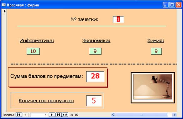 В режиме Конструктора создайте следующую форму КРАСИВАЯ: