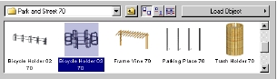 Связывание модуля: модуль - это набор строительных элементов, размещенном на поэтажном плане с использыванием горячих связей. Сначала разместим несколько библиотечных деталей Bicycle Holder 03 70 из раздела библиотеки Park and Street 70.