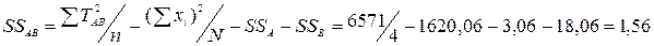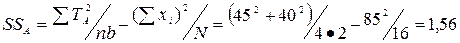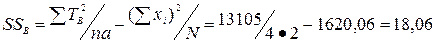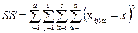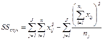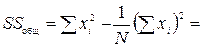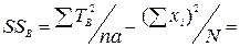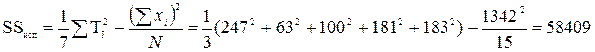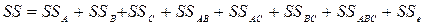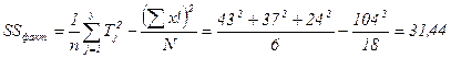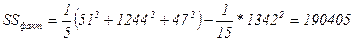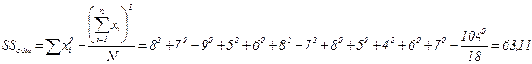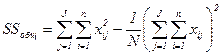 Из изложенного выше видно, что сумма квадратов между группами и сумма квадратов внутри групп составляют общую или полную сумму квадратов, которая определяется по формуле.