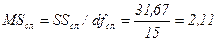 5. Разделить каждую SS на соответствующее число степеней свободы.