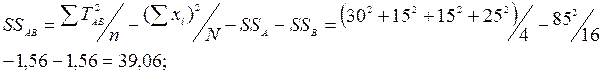 а – число градаций фактора А, а = 2 b – число градаций фактора В, b = 2 n – число испытуемых (объём выборки), n = 4 N – общее количество индивидуальных значений N = 16