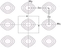 Эти выражения показывают, что двумерное ДПФ по прямоугольному растру дискретизации данных может вычисляться с помощью одномерных последовательных ДПФ. Вторые суммы выражений (17.2.1') и (17.2.2') являются одномерными ДПФ сечений функций s(n,m) и S(k,l) по линиям n и k соответственно, а первые - одномерными ДПФ вычисленных функций в сечениях по m и l. Другими словами, исходные матрицы значений s(n,m) и S(k,l) пересчитываются сначала в промежуточные матрицы с ДПФ по строкам (или по столбцам), а промежуточные - в окончательные с ДПФ по столбцам (или соответственно по строкам). Для того чтобы периодическое повторение спектра (рис. 17.2.1), вызванное дискретизацией аналогового сигнала с частотой Fx=1/Dx и Fy=1/Dy, не изменяло спектр в главном частотном диапазоне (по отношению к спектру исходного аналогового сигнала), необходимо и достаточно, чтобы максимальные частотные составляющие fmax в спектре аналогового сигнала как по строкам, так и по столбцам, не превышали частоты Найквиста (fmax.x £ fN = Fx/2, fmax.y £ fM = Fy/2). Это означает, что частота дискретизации сигнала должна быть минимум в два раза выше максимальной частотной составляющей в спектре сигнала: Fx ³ 2fmax.x, Fy ³ 2fmax.y, (17.2.3) что обеспечивает выход спектральных функций на нулевые значения на концах главного диапазона спектра. Интерполяционный ряд восстановления двумерного сигнала. Если непрерывный сигнал sa(x,y) является сигналом с ограниченным спектром, а периоды дискретизации выбраны достаточно малыми и спектры соседних периодов не перекрываются: Sa(Wx,Wy) = 0 при |Wx| то, как и в одномерном случае, сигнал sa(x,y) может быть восстановлен по дискретному сигналу с использованием двумерного аналога ряда Котельникова-Шеннона: sa(x,y) = Sn Sm s(n,m) Частотные искажения изображений и их устранение. Сигнал с неограниченным спектром также может быть дискретизирован, однако в этом случае имеет место наложение спектров в смежных периодах, при этом высокие частоты, большие частот Найквиста, будут "маскироваться", как и в одномерном случае, под низкие частоты главного периода. Эффект "отражения" от границ периода дает еще более сложную картину вследствие интерференции частот, отраженных по разным координатам. Аналогичный эффект, известный как алиасинг (aliasing) будет наблюдаться и при недостаточной частоте дискретизации изображений. Особенно наглядно этот эффект можно наблюдать на резких контрастных изменениях яркости. Для борьбы с подобными явлениями применяют префильтрацию (антиалиасинг) – предварительную свертку аналогового изображения с весовой функцией фильтра, отсекающей высокочастотные компоненты, которые могут привести к алиасингу. В двумерном случае фильтрация описывается следующим образом: z(x, y) = h(x', y') ③③ s(x-x', y-y'). (17.2.5) Следует заметить, что аналоговые изображения существуют только в оптическом диапазоне, например, в виде светового отображения экране, фотобумаге или фотопленке, но не могут существовать в памяти компьютера. Поэтому физическое выполнение префильтрации возможно только при регистрации изображения путем его расфокусировки, что, как правило, не применяется. Первичная информация всегда должна регистрироваться с максимальной полнотой и точностью, а очистка первичной информации от излишних подробностей и избыточности – дело последующей обработки данных. Поэтому применительно к уравнению 17.2.5 двумерная префильтрация,