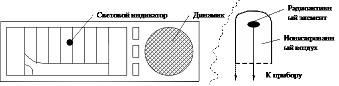 Освещатель – работает на принципе изменения электропроводности ионизированных радиоактивных элементов. УПСТМ – управление пожарной системой. Непрерывный звук (пи-и-и-и-и) – опасность!!! В котельном отделении, на ПУ установлен датчик, который реагирует на быстрое повышение температуры.