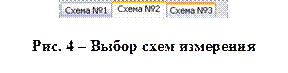 Окно «Схемы измерений» предоставляет возможность выбора схемы измерений, которая реализована в реальном измерительном блоке. Выбор осуществляется при помощи ярлычков, расположенных в верхней части окна. Всего схем существует три.