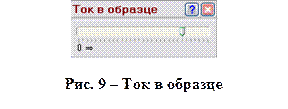 Чтобы включить (или выключить) нагреватель, следует щелкнуть на выключателе левой кнопкой «мыши». Светодиод индицирует состояние включения (выключения) нагрева. Примечание. Если температура достигает предельной для измерительного блока, нагрев автоматически выключается независимо от положения выключателя. Источник тока. Предназначен для изменения тока через образец, рисунок 9.