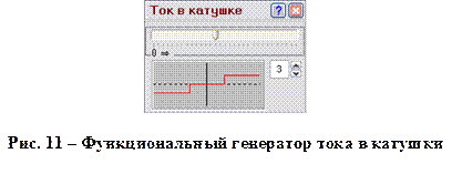 Позволяет при помощи ползунка изменять значение силы тока через образец от нуля до максимального значения. Максимальное значение силы тока определяется образцом, включенным в измерительном блоке лабораторного стенда. Обычно это значение около 3 мА. Передвигать ползунок можно либо с помощью «мыши» (нажав на левую кнопку и, не отпуская кнопку, перемещая «мыши»), либо с помощью стрелок на клавиатуре. Функциональный генератор схемы №1. Предназначен для изменения тока через катушку, создающую магнитное поле в образце, рисунок 10