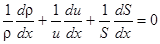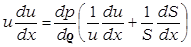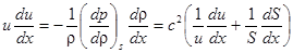 Уравнение Эйлера и уравнение непрерывности позволяют определить зависимость скорости течения от площади поперечного сечения. Преобразуем правую часть уравнения Эйлера:
