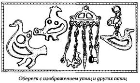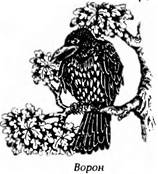 Жар-птица Олицетворением огня является и Огненная птица (Жар-птица) — воплощение бога грозы. Из ее раскрытого клюва вместе со звуками грома сыплются перлы — искры молний. Огонь и вода соединялись славянами в образах Купалы, Коляды, Огненной реки. Птица-Юстрица Так называла народная молва страшную болезнь — холеру. Имела она вид огромной черной птицы со змеиными головами и хвостом. Ночами пролетает она над деревнями-селами и где заденет воду железным крылом, там разразится повальный мор. Вот какая загадка ходила в народе об этой болезни, несущей всеобщую погибель: На море, на океане, Ворон и ворона В народных представлениях нечистые и зловещие птицы. Как и другие птицы семейства вороновых (галка, грач). Они объединены сходными поверьями и названиями. Воронье, гайворонье, гай, галь, галье, чернь — собирательные названия всех этих птиц в целом. Ворон — вещая птица. Он живет сто или триста лет и владеет тайнами: предсказывает смерть, нападение врагов, в былинах дает советы героям, в сказках указывает зарытый клад, в песнях приносит матери весть о гибели сына и т. п. Птицы этого семейства имеют черную окраску и противопоставляются добрым, кротким и святым птицам, в особенности голубю, как зловещие, хищные и нечистые, что находит отражение в представлениях о птичьем облике душ людей, в христианизированных легендах о всемирном потопе и т. д. С другой стороны, на противопоставлении белого (или пестрого) и черного (безобразного) оперения строится комизм ряда сказок о вороне. Народные представления отчетливо выявляют дьявольскую природу птиц семейства вороновых. Так, ворона считают черным оттого, что он создан дьяволом. В вороне видят нечистую силу. Черт может принимать облик черного ворона или вороны. В образе ворона черт летает ночью по дворам и поджигает кровли. Верят, что черти в виде ворон слетаются и кружат над домом умирающего колдуна, чтобы помочь выходу его души из тела. Души злых людей представляют в виде черных воронов и ворон. Считают, что ведьму можно определить по черному ворону, сидящему на ее доме. Библейского происхождения легенда о вороне, проклятом или наказанном Богом или Ноем за то, что, выпущенный из ковчега, чтобы узнать, кончился ли потоп, он не вернулся назад. В наказание за это ворон, бывший когда-то белым как снег и кротким как голубь, стал черным, кровожадным и обречен питаться падалью. С представлением о воронах и галках как нечистых птицах связан запрет употреблять их в пищу. Хищность, кровожадность и разбой — характерные мотивы в представлениях о вороне и вороне. Вороны, как и ястребы, охотятся на цыплят. Чтобы уберечь их от ворон, вывешивают на дворе убитую сороку. Считают, что если опрокинуть горшок вверх дном, вороны не смогут увидеть цыплят. С той же целью в день Рождества ворон и ястребов называют в некоторых местах голубями. На Украине, выгоняя в первый раз весной цыплят из хаты, произносят заклинание: «Святий Кузьма-Дем'ян,/ Паси моіх курченят,/ Щоб ворона не хватила /І нічого не зйіло». Хищность связывает в поверьях ворона с волком. Существует примета: кто поет в лесу и увидит воронов, наткнется на волка. Карканье воронов, пролетающего над стадом, предвещает скорое нападение волка на стадо. Согласно польской легенде, вороны и галки произошли из щепок, когда дьявол создавал волка, вытесывая его из дерева. В разных 