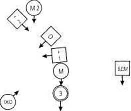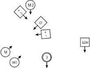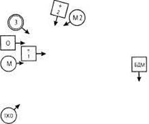 Рис. 9.1: О - отец; М - мать; +1 — первый ребенок, рано умерший сын-инвалид; +2 — второй ребенок отца, рано умерший внебрачный сын; 3 — третий ребенок, дочь (Утэ); М2 — мать умершего внебрачного ребенка; 1ЖО — первая жена отца; БДМ — бывший друг матери. Утэ: Неожиданно я вижу так много людей, а всегда чувствовала себя такой одинокой. Б.Х.: Как чувствует себя отец? Отец: Мне просто плохо. У меня плохое настроение, и ситуация как будто безвыходная. Мне кажется, что я застрял и не могу двинуться ни вперед, ни назад.