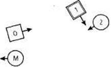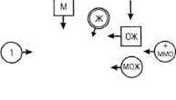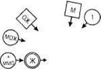 Рис. 27.1: М - муж; Ж — жена (Криста); 1 — ребенок, дочь. Б.Х.: Как чувствует себя муж? Муж: Я чувствую связь с дочерью, но одновременно мне очень хочется повернуться к жене.