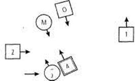 Рис. 28.1: О - отец; М - мать; 1 — первый ребенок, сын; 2 — второй ребенок, сын; 4 — четвертый ребенок (Даниэль). Б.Х.: Как чувствует себя отец? Отец: Я только что спросил себя: что такого случилось в нашей семье, из-за чего старший сын ушел. Моя жена стоит между мной и нашим вторым сыном, так что я не могу его видеть, но мне хотелось бы, чтобы у нас с ним был контакт. Б.Х.: Как чувствует себя мать? Мать: Я немного растеряна. Я не вижу ни своего мужа, ни первого, ни второго ребенка. Только младший сын находится в моем поле зрения. Б.Х.: Как чувствует себя старший сын? Первый ребенок: Позади себя ощущаю что-то сильное и ужасное. Кроме своих родителей я ничего не воспринимаю, но даже их я вижу только краем глаза. Б.Х.: Как чувствует себя второй сын? Второй ребенок: Мне очень хочется следовать за старшим братом. Б.Х. (участнику, играющему роль Даниэля): Как чувствует себя самый младший сын? Четвертый ребенок: Это место слишком близко к матери. Я бы предпочел стоять вместе со своими братьями. Б.Х. (Даниэлю): Теперь поставь свою мертворожденную сестру в констелляцию. Сделай это спонтанно, следуя своим чувствам! Б.Х.: Что изменилось у самого младшего сына? Четвертый ребенок: Я очень боюсь. Она слишком близко ко мне, и в этом для меня есть опасность.