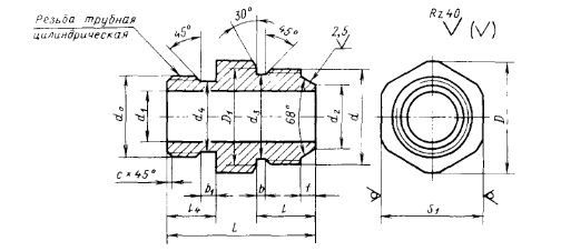 Гайка, деталь 2 Штуцеры концевые, деталь 1 Размеры, мм
