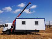 · Метало каркас – профильная труба 50х50 – (пол, крыша, главные перегородки, стойки угловые), 20х20 – (перегородки). · Утеплитель – пенопласт 20 мм + минеральная вата 50 мм, гидробарьер, паробарьер. · Наружная обшивка – профнастил С-10 (РЕ-полиэстер) – толщина 0,40 мм. · Внутренняя обшивка – QSB 8 мм. · Пол – QSB плита 18 мм. · Окна металлопластиковые – 800х1000 мм (поворотно-откидное и глухое). · Дверь металлическая российского производства – 2050х860х45 мм. · Розетка + проводка. · Выключатель + проводка. · Щит-автомат 16 А + проводка. · Освещение – плафон, лампа + проводка.