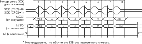 последовательных данных, определяемые управляющими битами CPHA и CPOL. Форматы передачи данных SPI показаны на Рис. 40 и 41.