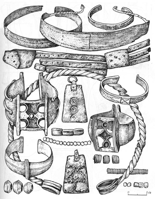 Таблица XIV. Предметы из Мощинского клада ГЛАВА 2. КУЛЬТУРЫ ВЕРХНЕГО ПОДНЕПРОВЬЯ И СМЕЖНЫХ ОБЛАСТЕЙ
