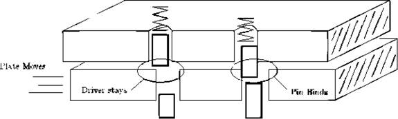 Рис. 4.2 (b) Отмычка поднимает штифт, который соприкасается со стенкой отверстия