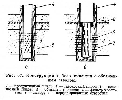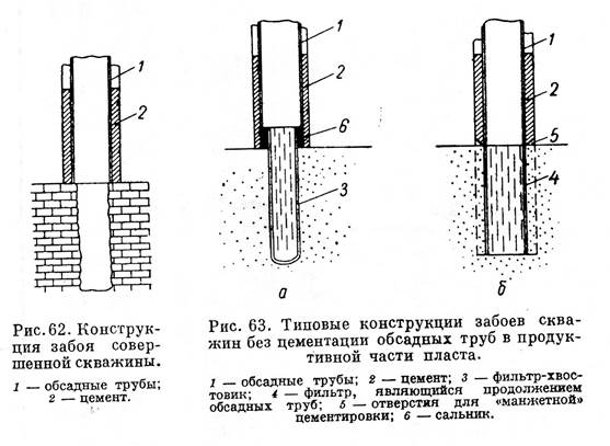 Конструкция забоев нефтяных скважин определяется литологическими и физическими свойствами продуктивных пластов и местоположением скважин на залежи. Так, например, при антиклинальной складке (рис. 61) в скв. 2 не следует вскрывать пласт
