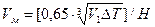 где ПДВМР – предельно допустимая концентрация максимально разовая для воздуха населенных мест, мг/м3, сф – фоновая концентрация вещества в атмосферном воздухе, сф = 0,3·ПДКМР = 0,3·0,2 = 0,06 мг/м3 А – коэффициент, зависящий от температурной стратификации атмосферы = 140, F – безразмерный коэффициент, учитывающий скорость оседания вредных веществ в атмосферном воздухе = 1 (для газов и паров), η - безразмерный коэффициент, учитывающий влияние рельефа местности, для ровной и слабопересеченной местности, с перепадом высот менее 50 м на 1 км η = 1, n и m – безразмерные коэффициенты, учитывающие условия выхода газовоздушной смеси из устья источника выброса. Для расчета коэффициента n необходимо определить значение вспомогательного параметра Vм для горячего выброса: