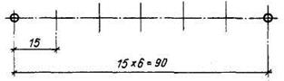 Рис. 41 – Размеры на чертежах Допускается проводить размерные линии непосредственно к линиям видимого контура, осевым, центровым и другим линиям, но не допускается использовать линии контура, осевые, центровые и выносные в качестве размерных. При нанесении размеров следует в основном руководствоваться ГОСТ 2.307-68 (СТ СЭВ 1976-79, СТ СЭВ 2180-80). На строительных чертежах различают три вида размеров: -номинальные(расстояние между координационными осями зданий); -конструктивные– размеры элементов строительных изделий отличаются от номинальных на нормированный зазор, установленный нормами (толщина шва и др.); -натурные– фактический размер элементов построенного здания; При расположении ряда одинаковых элементов на равных расстояниях друг от друга (например, стен здания, отверстий и т. П.) размеры между элементами проставляются только в начале и конце ряда или указывается расстояние между крайними элементами (рис. 42).