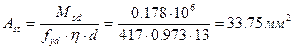 Эта величина момента находится на 1м ширины сечения полки Итак имеем:h=0.03м; b=1м; fcd=20МПа; fyd=417МПа; d=13мм. d=h-c-0,5 Æ, d=30-15-2=13мм Определяем коэффициент сжатой зоны: