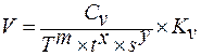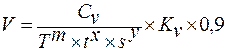 Коэффициент Cv=340; показатели степени m=0,2; x=0,15; y=0,45 для материала режущей части резца твердого сплава Т15К6 по табл. 17[6]. Т=45 мин – стойкость инструмента при одноинструментальной обработке; Kv – поправочный коэффициент для стали рассчитываемый по формуле: