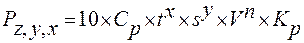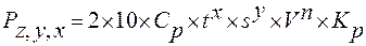 Сp – коэффициент, x, y, n – показатели степени для трех координат, принимаем по таблице 22[6]. Pz: Cp=300; x=1; y=0,75; n=-0,15 Py: Cp=243; x=0,9; y=0,6; n=-0,3 Pz: Cp=339; x=1; y=0,5; n=-0,4 Kp – поправочный коэффициент, учитывающий фактические условия резания, рассчитываемый по формуле: Kp=Km p´Kj p´Kg p´Kl p´Krp, где (34)