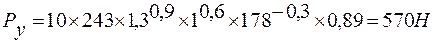 Определим усилия резания (усилия считаем по черновому переходу, как наиболее нагружающему). Сила резания находится по формуле:
