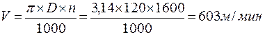 По паспорту станка принимаем n=1600 об/мин. Тогда скорость резания примет значение: