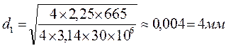 d1 – внутренний диаметр резьбы; α=2,25 – коэффициент затяжки; Q=665 Н – осевое усилие, действующее на шпильки (болты); z – число болтов; [σr]=30 Мпа – предел прочности на растяжение. Тогда получим: