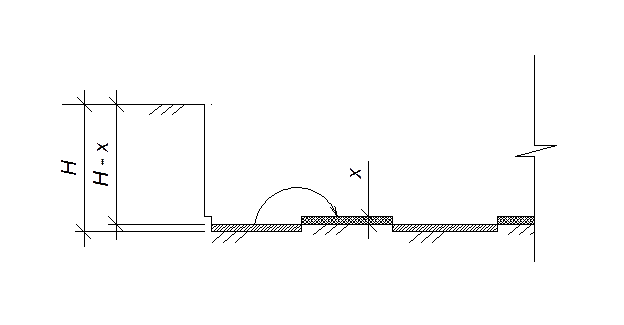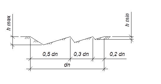 dn – длина полосы; hmax – максимальная высота слоя После того, как срезали растительный слой начинают разбивку котлована. Разбивку котлована начинают с выноса и закрепления (в соответствие с проектом) основных рабочих осей. Вокруг будущего котлована на расстоянии 2 – 3 м от бровки устанавливают обноску, параллельно основным разбивочным осям. Для пропуска автотранспорта выполняют разрывы. На обноску переносят основные разбивочные оси, и начиная от них, размечают все остальные оси здания. Оси закрепляют на обноске пропилами или гвоздями. Размеры котлована по верху и по низу, другие характерные точки отмечают хорошо видимыми колышками или вехами. Отклонения размеров здания по строительной обноске не должны превышать 5 мм по длине здания до 10 м и 20 мм при длине здания до 100 м и более. Разработка котлована выполняется экскаватором обратная лопата, т.к. часть грунта укладывается на строительной площадке в отвал, а часть вывозится. Выемка разрабатывается при периодическом перемещении экскаватора в забое экскаваторными проходками. Разработка выполняется лобовыми проходками. Ширина проходки зависит от наибольшего радиуса копания. Определение проходки